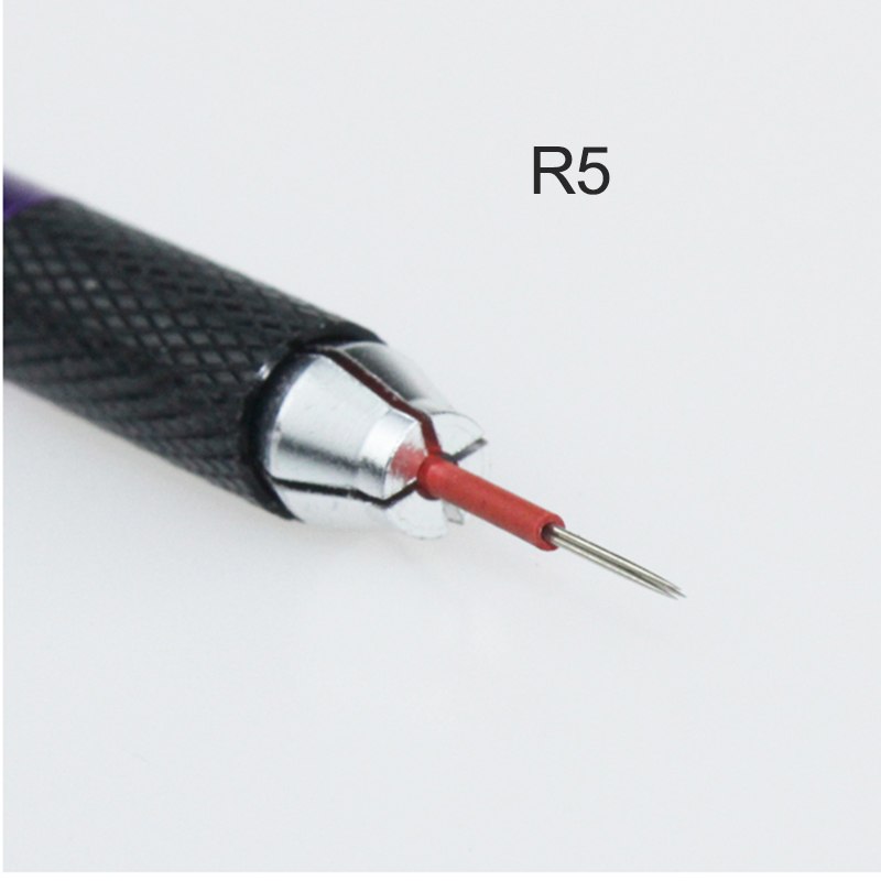 Agujas de microblading 5R estériles de 5 púas en forma circular.